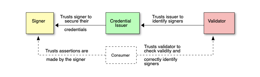 The current version of the C2PA spec uses a PKI based on x509 certificates. A claim signer must have a signing certificate and a validator will check that the signing certificate fulfills one of the following conditions: